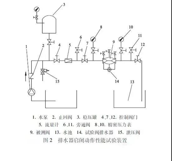 在文獻[1]~[5]中,對倒流防止器的使用性能、製(zhì)造安(ān)裝和試驗檢測給出了明確的規定和要求,其中對於倒流防止器的設置要求和阻力性能試驗及性能指標有所差異。倒流防止器的使用和(hé)性能(néng)試驗(yàn)項目及方法主(zhǔ)要(yào)包括排水器(qì)啟閉動作性能試驗,排水器密封性能試(shì)驗,回流汙染功能試(shì)驗,耐久(jiǔ)性能試驗,壓力損失(shī)試驗,殼體強度試驗和閥瓣的強度試(shì)驗。3.1 排水器啟閉動作性能試驗排水器啟閉動作性能試驗裝置(圖2)壓力小於0 3 MPa。被測閥的進口壓力降低,在(zài)不大於出口壓力時,排水器應開啟排水,但不持(chí)續排水。在被測閥通水時,排水器(qì)應迅速關閉,不漏水(shuǐ)。連續重複上述步驟3次以上(shàng),排水(shuǐ)器啟閉動作應靈敏可靠。